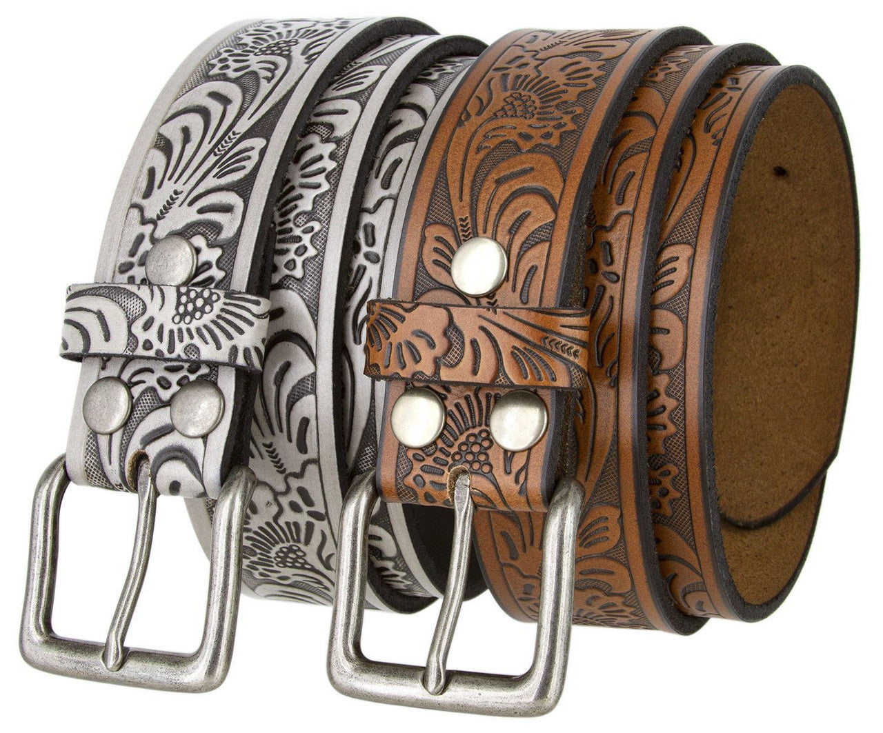 • Classic antique buckle 1-1/2"(38mm) wide western floral embossed design belt strap with 7 belt holes for plenty of room for adjustments to offer maximum comfort.